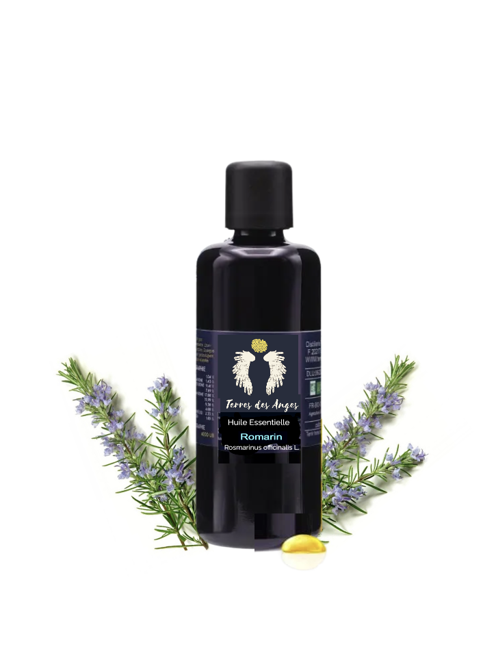 L’huile essentielle de romarin bio stimule l’énergie, favorise la concentration et soutient la digestion. Elle tonifie le cuir chevelu, aide à la pousse des cheveux et soulage les tensions musculaires.